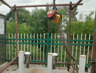 首先因為手拉葫蘆是人工操作設備,需要人力拉動鏈條才能提升重物,同時拉動兩臺葫蘆的鏈條容易出現(xiàn)相互纏繞、負載擺動、傾斜或不穩(wěn)定,增加了意外事故的發(fā)生概率,而且葫蘆罩殼緊挨在一起,吊裝重物時容易出現(xiàn)斜拉歪吊的情況,稍有不慎,鏈條可能會脫離葫蘆罩殼。
